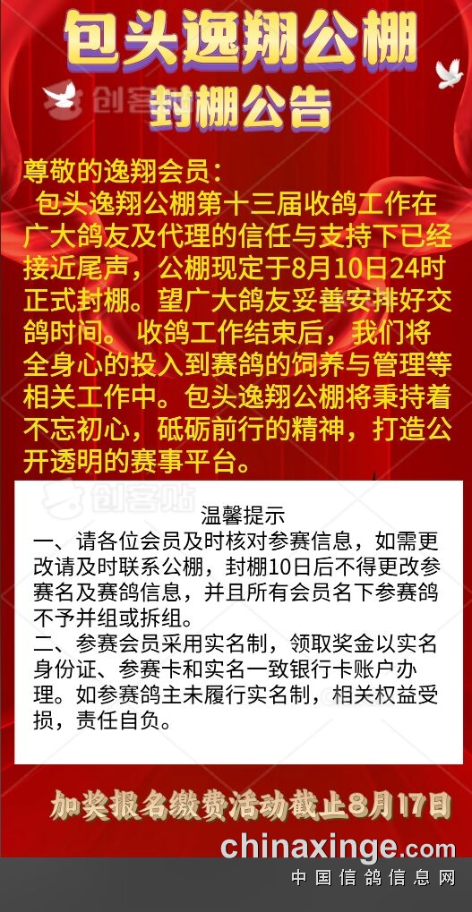包头逸翔公棚第十三届封棚公告