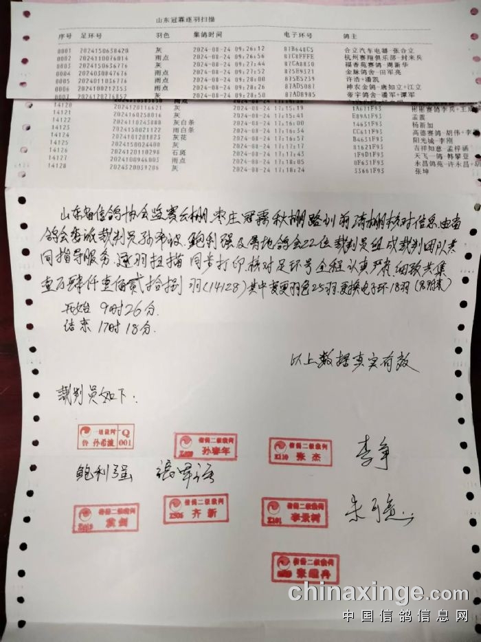 山东冠霖赛鸽公棚400公里三日归巢清单(按顺序)