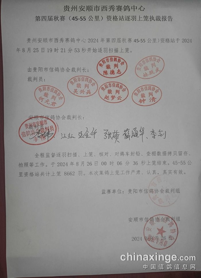 西秀赛鸽:2024年第四届秋赛(45-55公里)资格站集鸽上笼清单