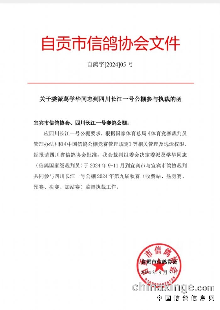 四川长江一号公棚2024年资格站外市信鸽裁判函