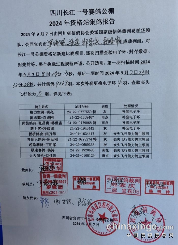 资格站集鸽报告