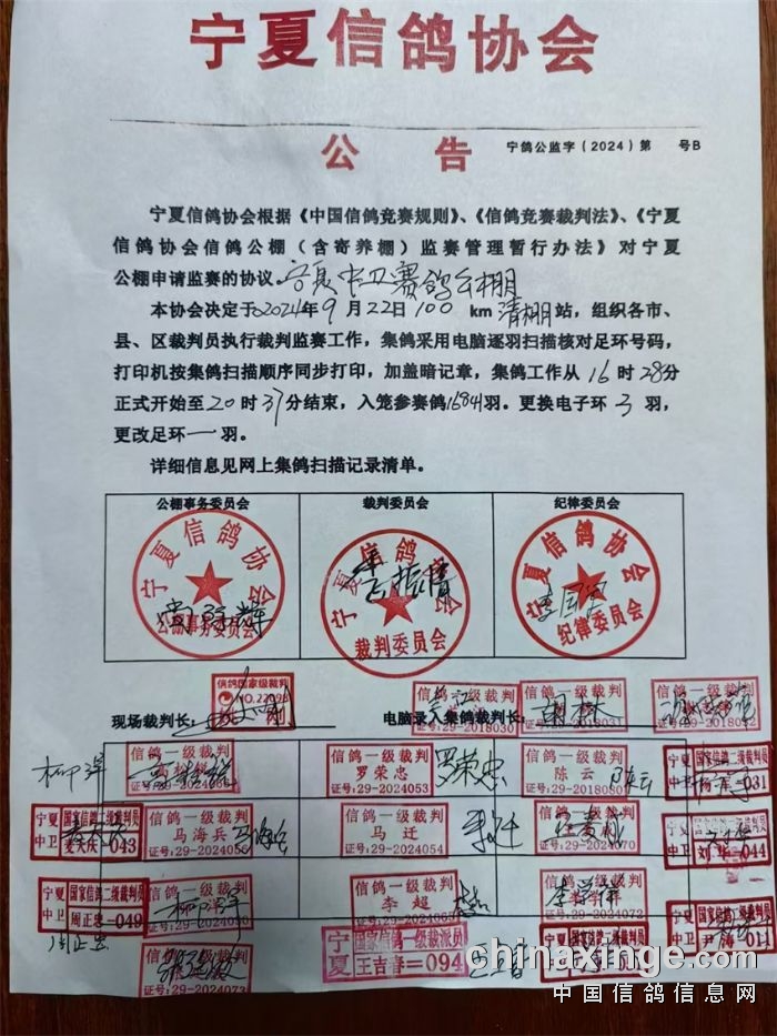 宁夏信鸽协会公告