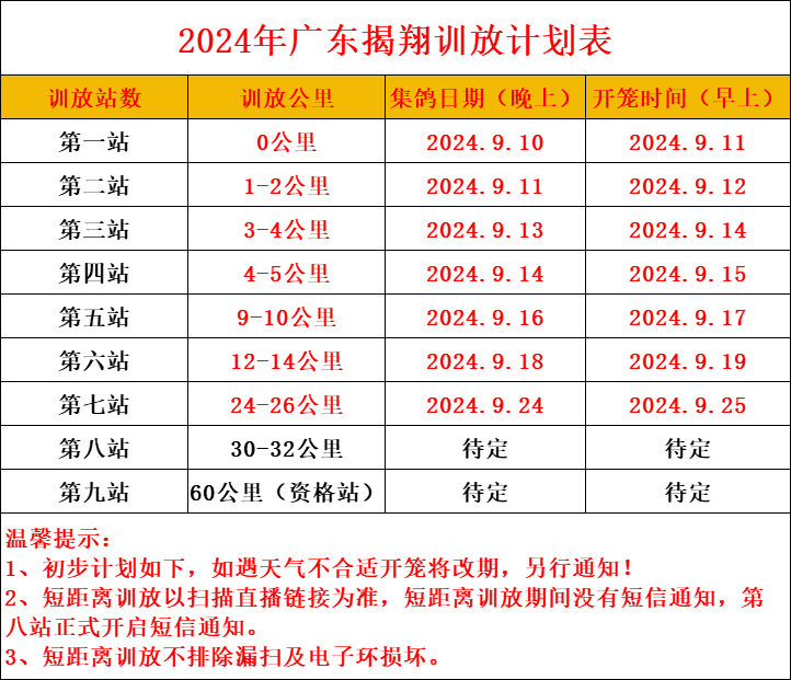 广东揭翔赛鸽公棚第七届第三站3-4公里训放数据直播