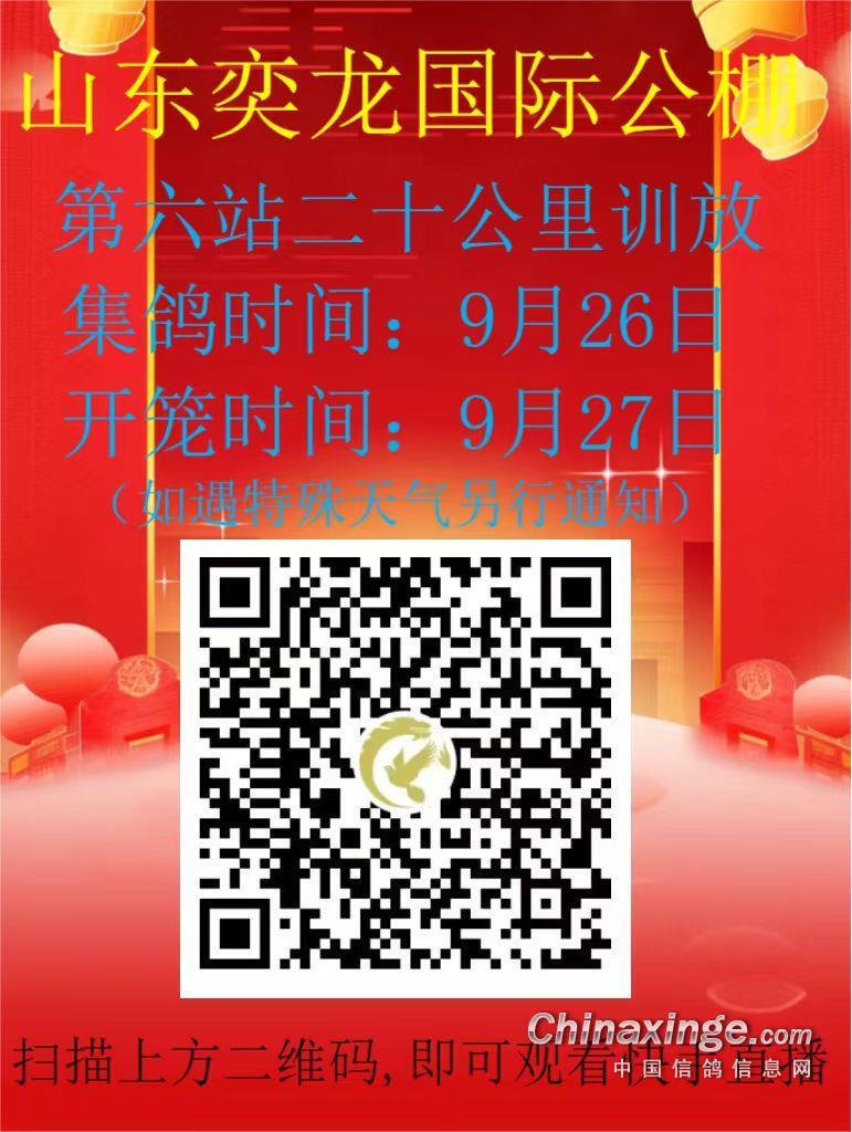 山东奕龙国际赛鸽公棚第六站二十公里训放公告