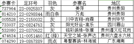 贵州万顺公棚:2025年秋赛第三关半决赛集鸽清单