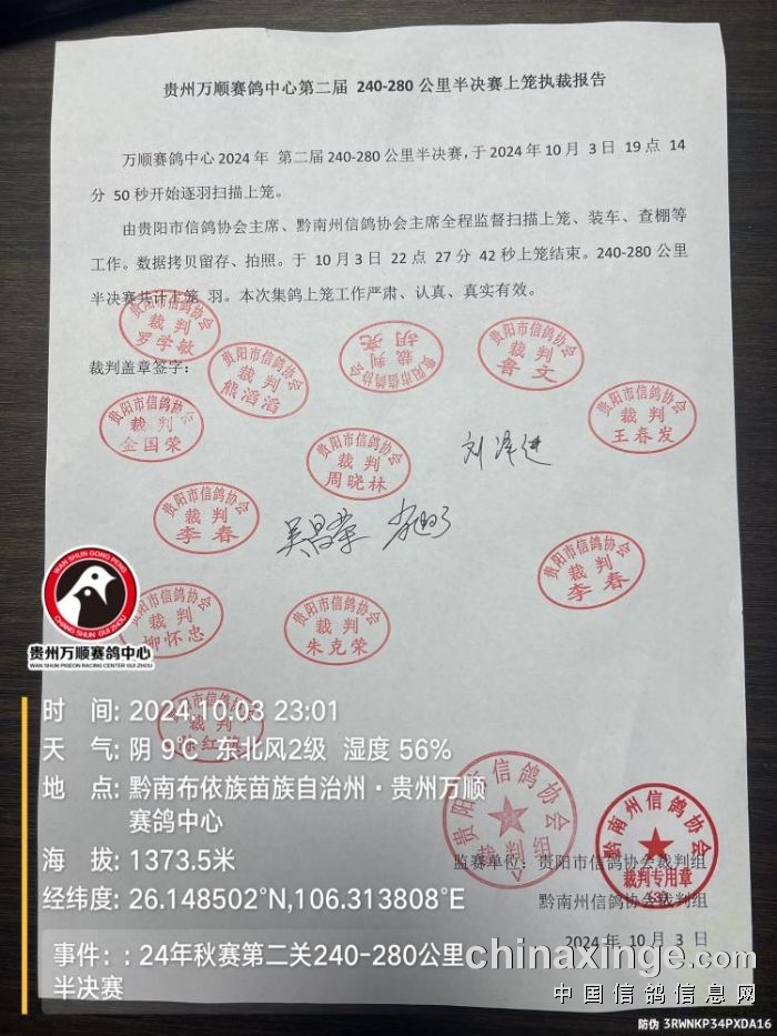 贵州万顺公棚:2025年秋赛第四关总决赛(450公里)扫描(实时在线)