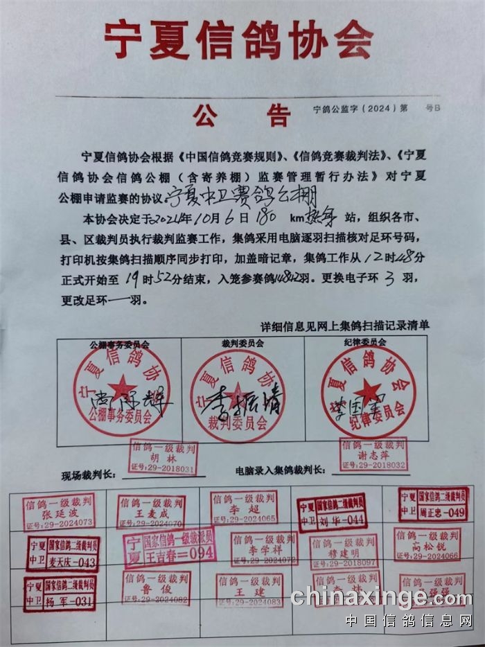 • 宁夏中卫赛鸽公棚双关鸽王加站赛核对通知 (2025-11-25 14:34:56)