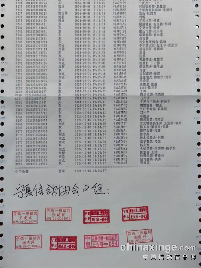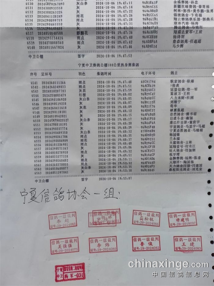 • 宁夏中卫赛鸽公棚520公里第三关大团体获奖名单 (2025-11-20 17:07:07)