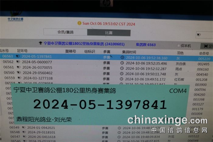提示:如果此页面是训放清单,要想快速查询鸽环号,请按Ctrl+F然后输入您要查找的环号进行查找!