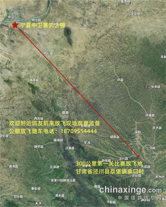 宁夏中卫赛鸽公棚300-330公里第一关比赛暂定于1013日集鸽,14日在甘肃省泾川县荔堡镇开笼。(如遇天气缘故,比赛时间提前或顺延,具体时间另行通知)