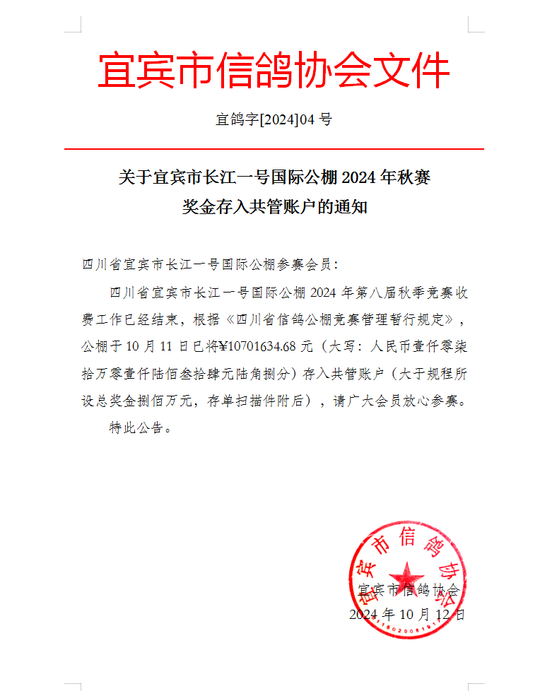 四川长江一号公棚2024年奖金已存入共管账号