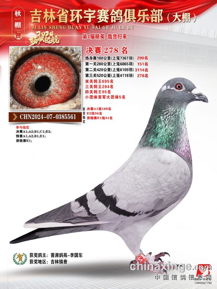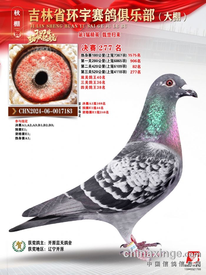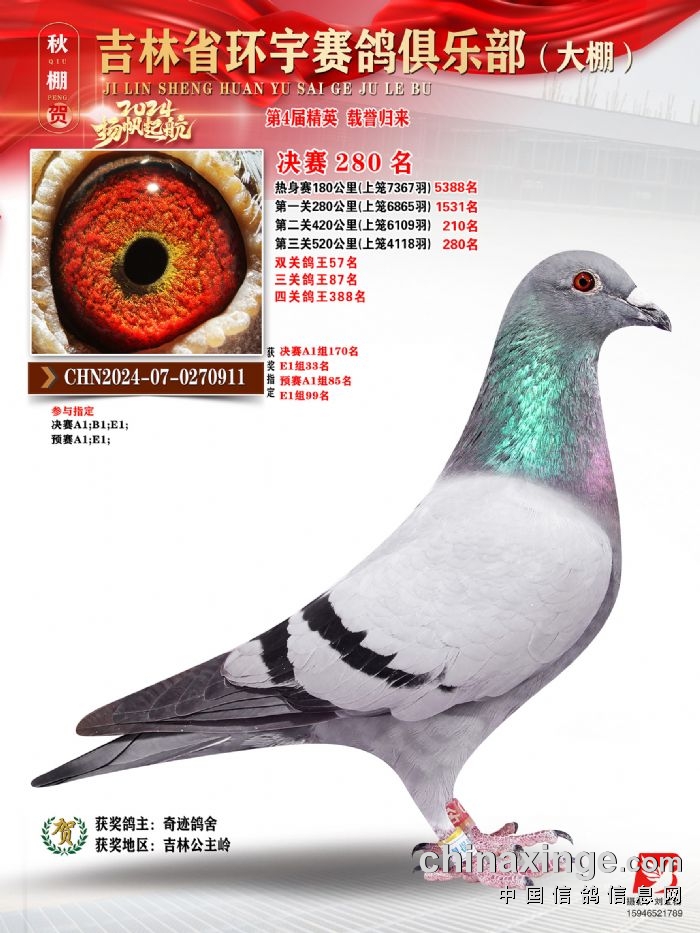 环宇公棚(大)180公里鹤乡杯竞技赛获奖名单