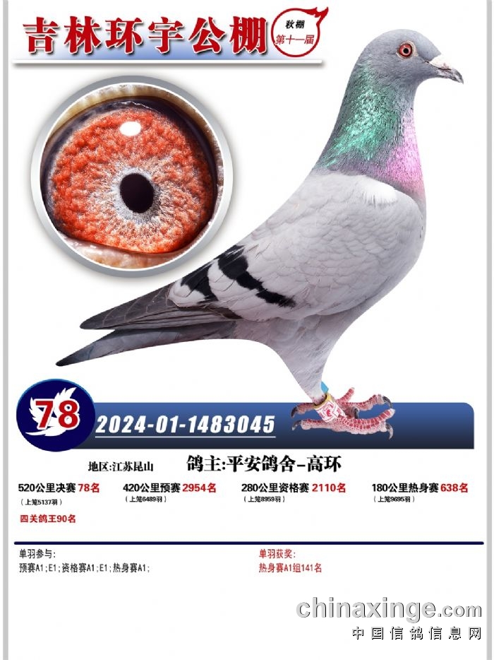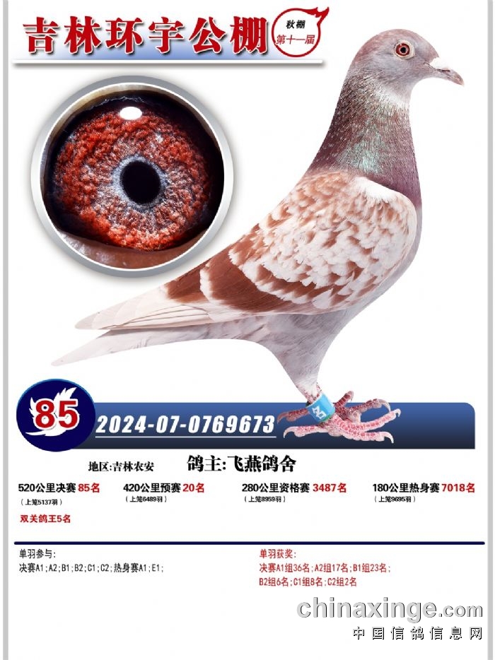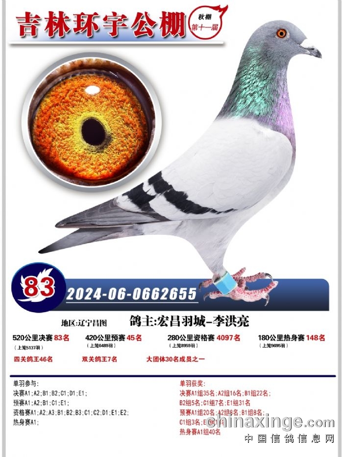环宇公棚(小)420公里集鸽数据(按上笼顺序)