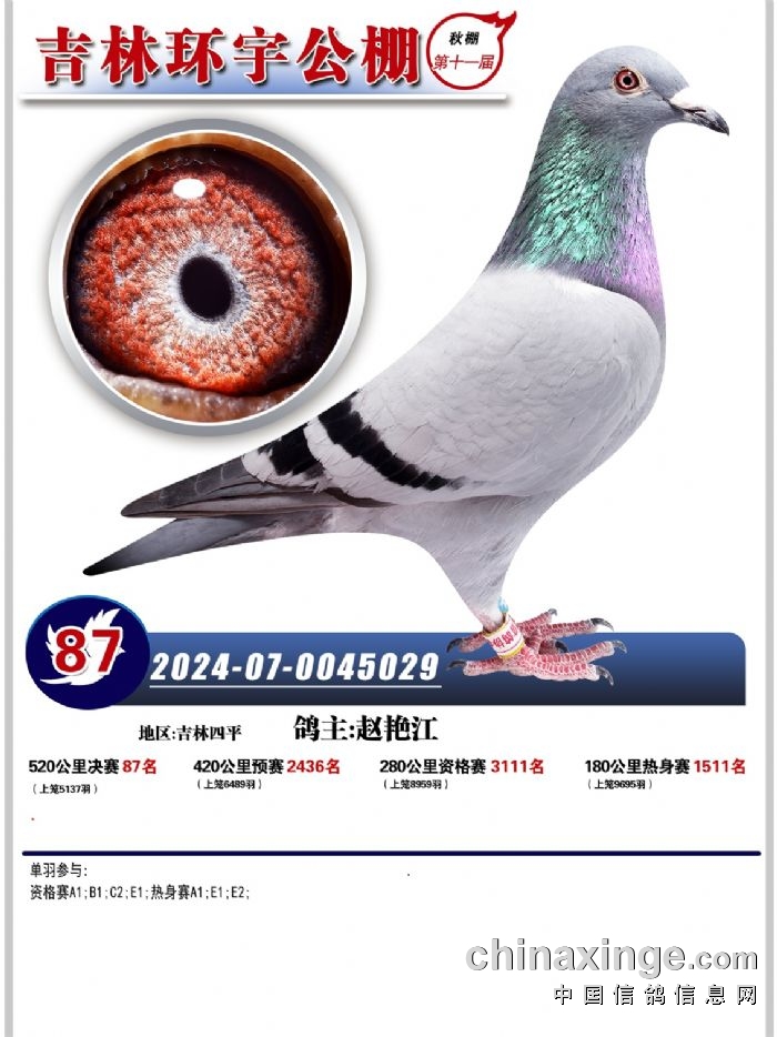 环宇公棚(小)420公里集鸽数据(按姓名顺序)