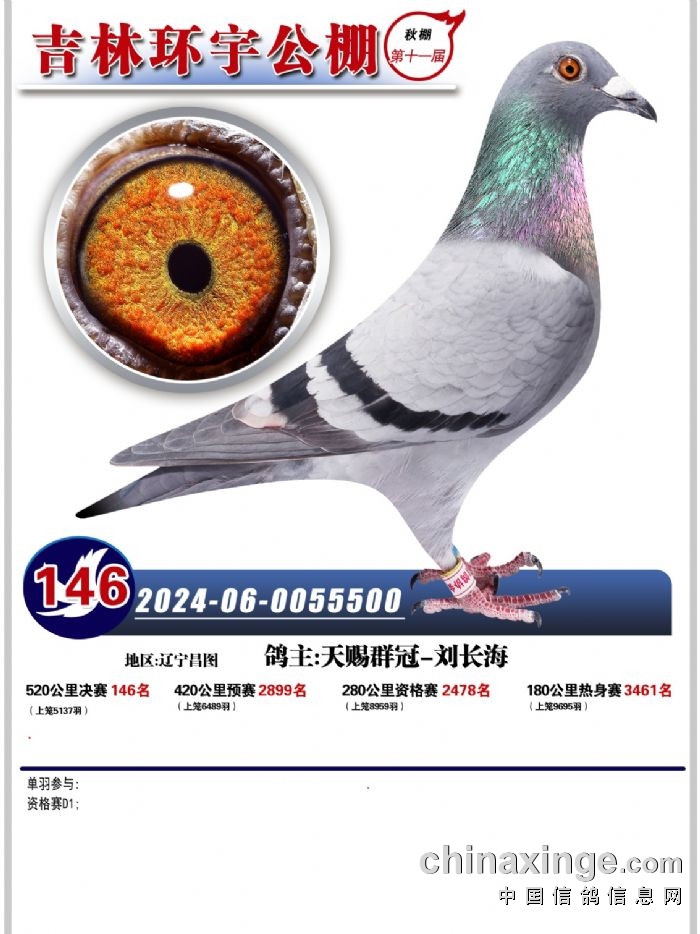 环宇公棚(小)420公里集鸽数据(按上笼顺序)