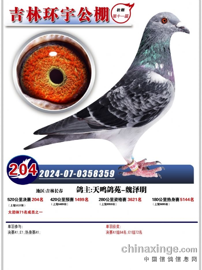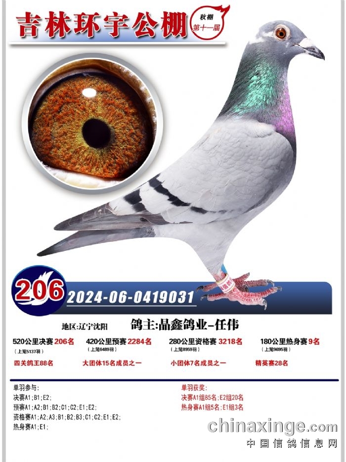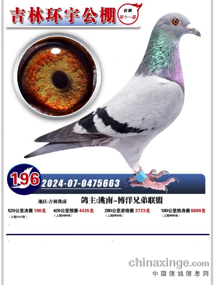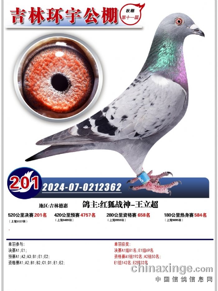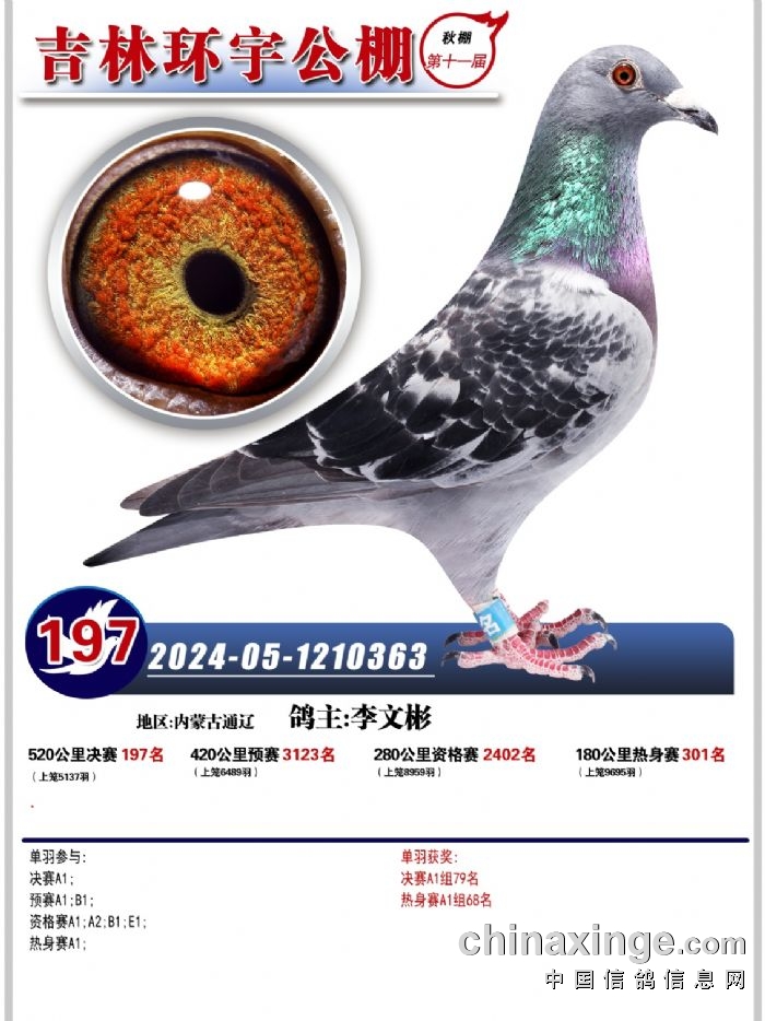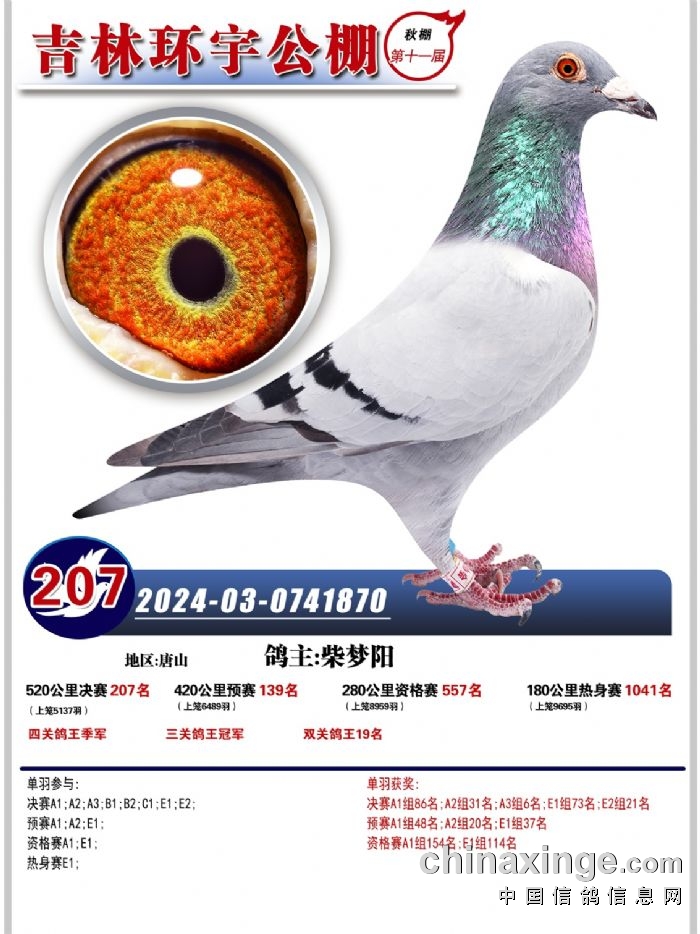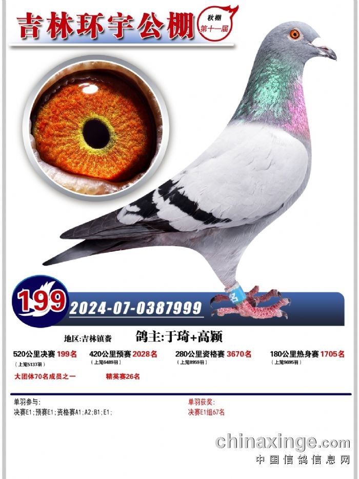 环宇公棚(小)520公里决赛集鸽数据(按姓名排序)