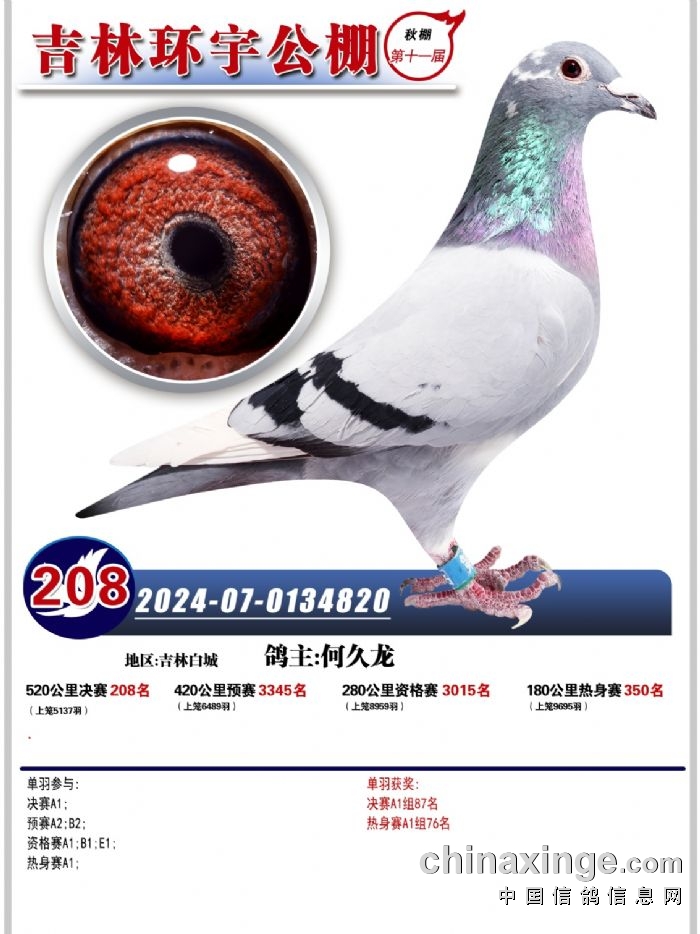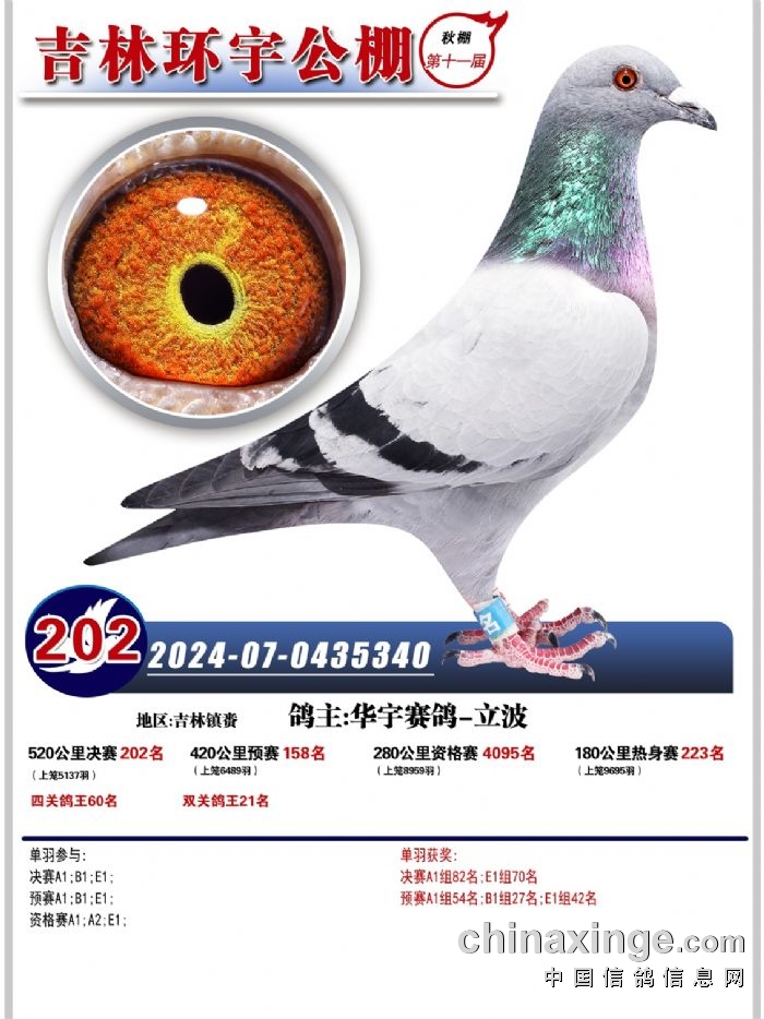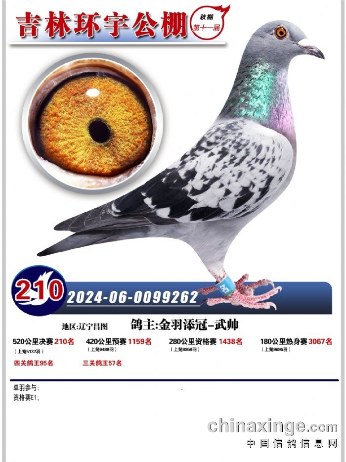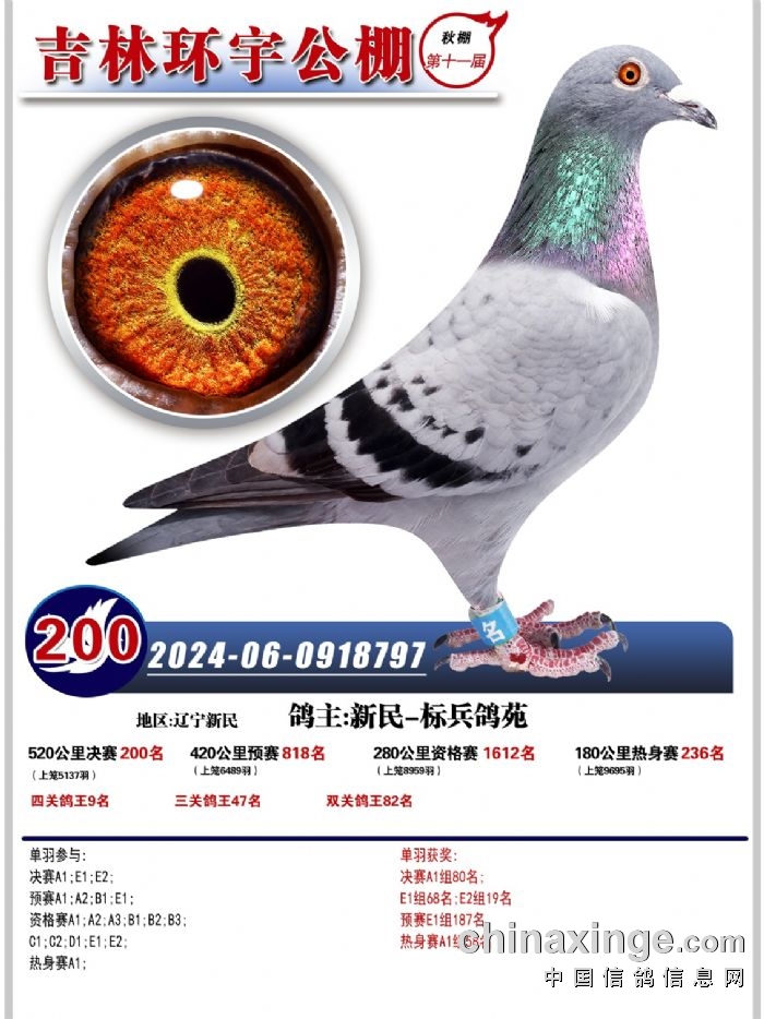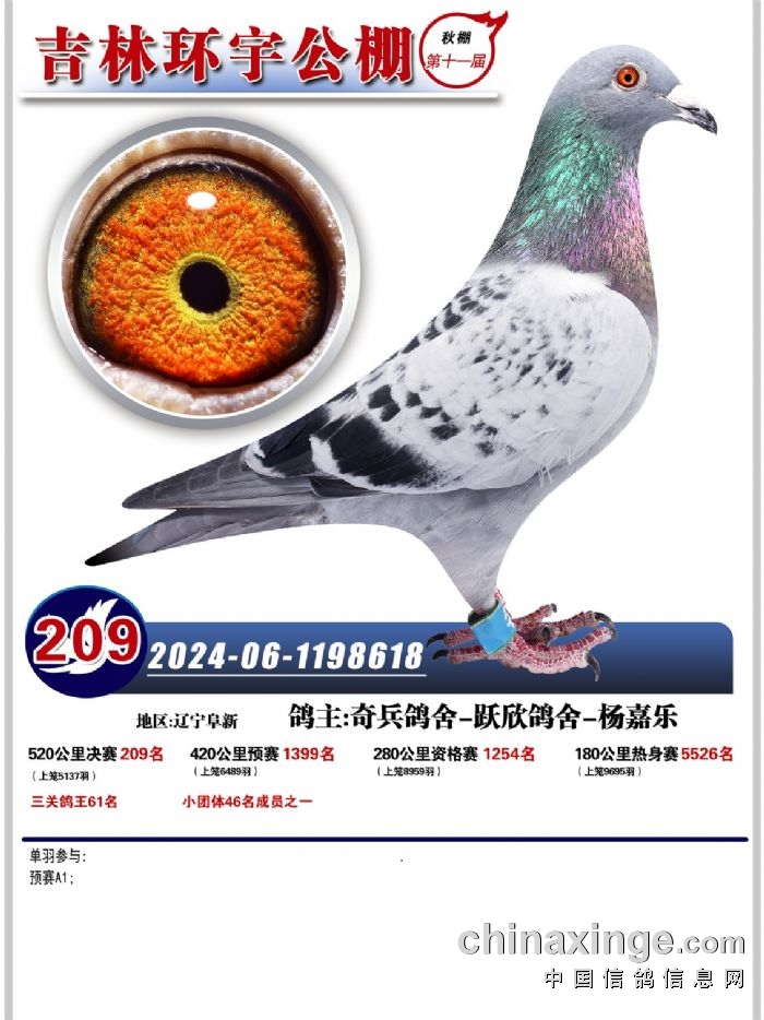 环宇公棚(小)520公里决赛集鸽数据(按上笼顺序)