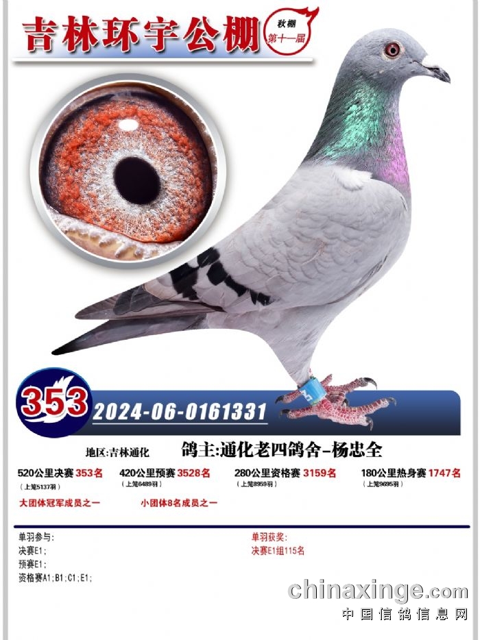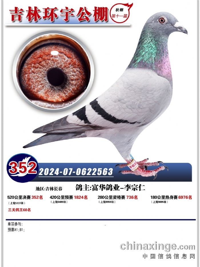 环宇公棚(小)420公里集鸽数据(按姓名顺序)
