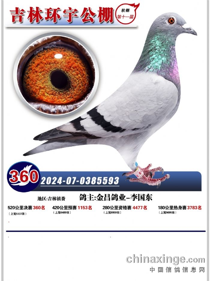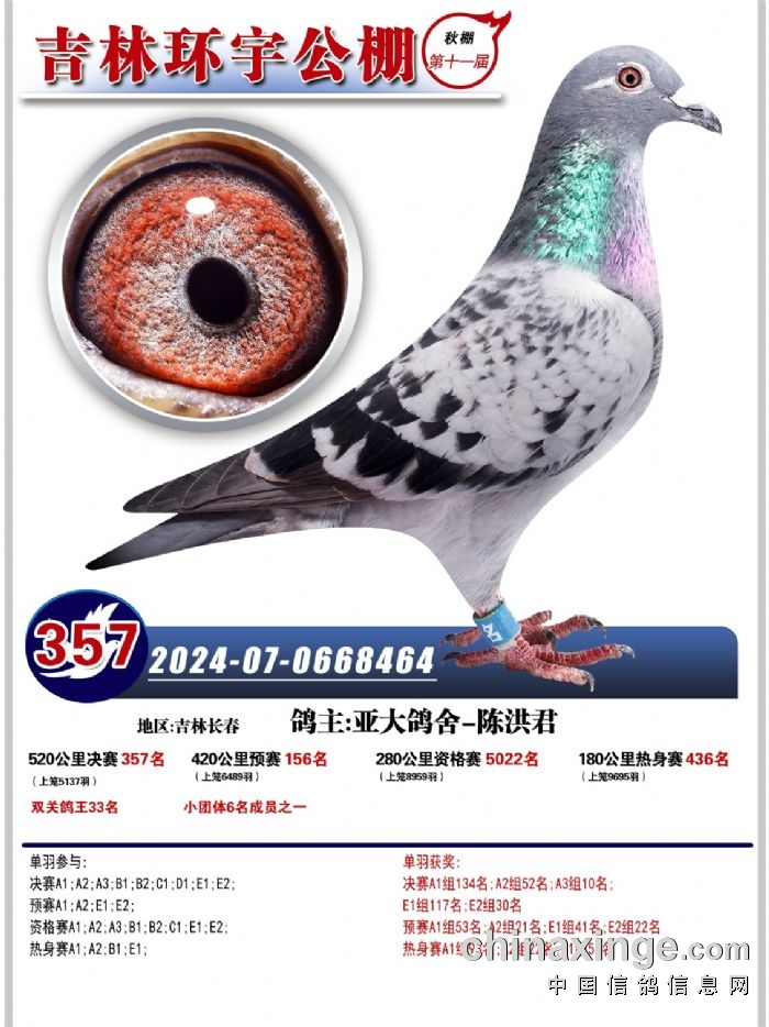 环宇公棚(小)420公里集鸽数据(按上笼顺序)