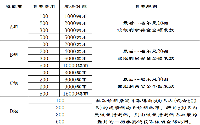 1、参赛鸽在180公里赛前,将继续进行正常家飞,如有丢失、游棚属于正常现象。(如已指定项目,退回指定费用。)