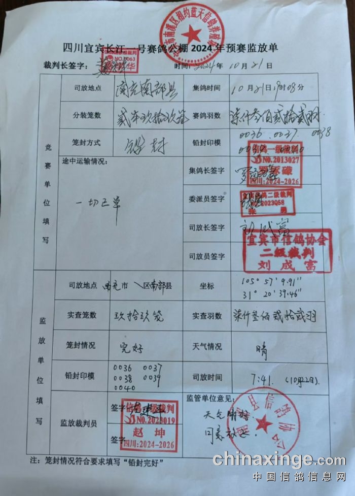 长江一号赛鸽公棚2024年(秋)预赛成绩直播(中鸽网)