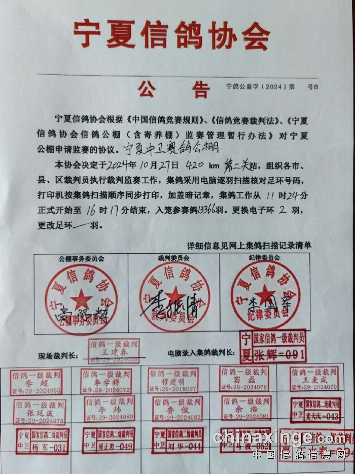 宁夏信鸽协会公告