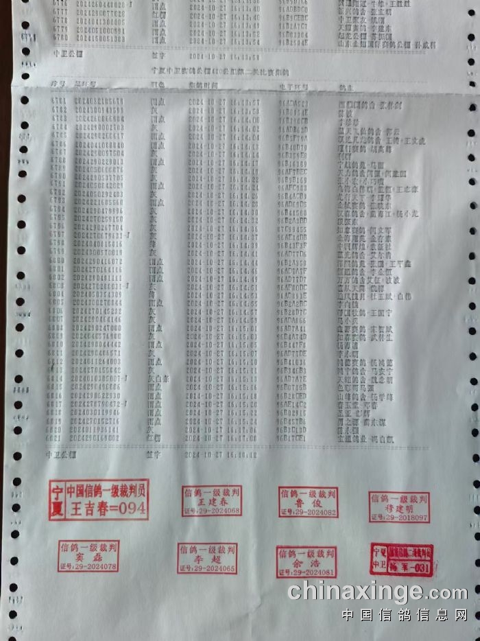 宁夏中卫赛鸽公棚近期归巢鸽明细