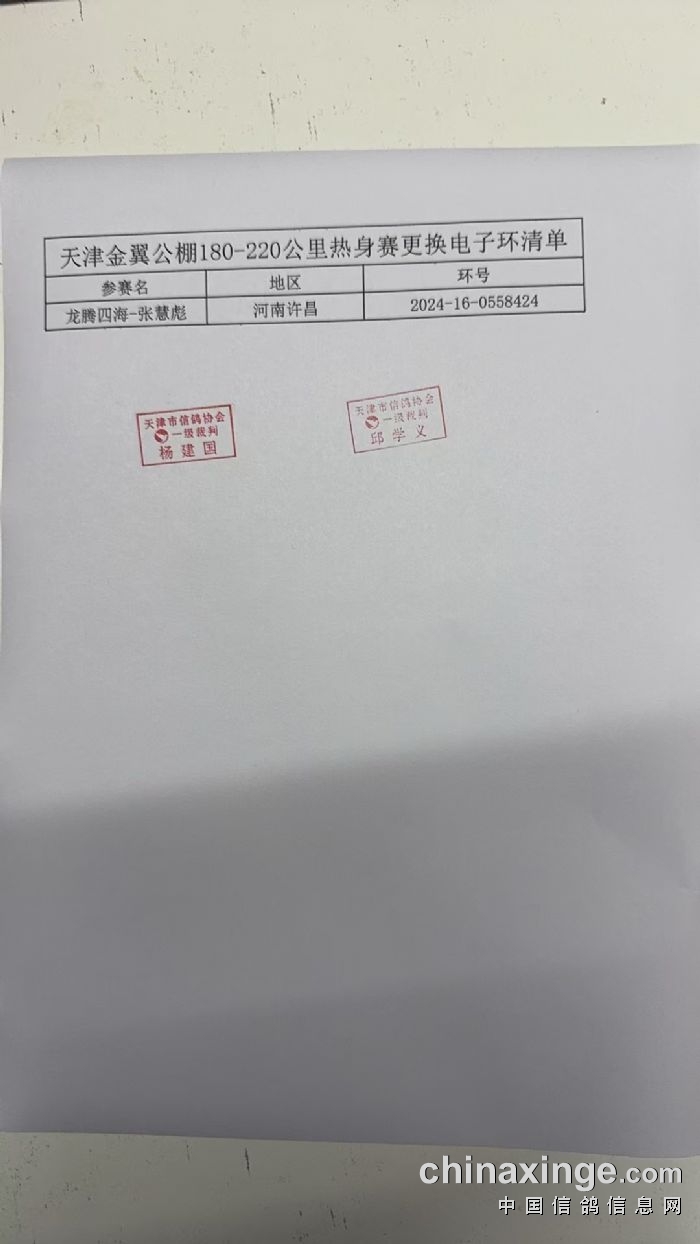 天津金翼公棚180-220公里热身赛更换电子环清单