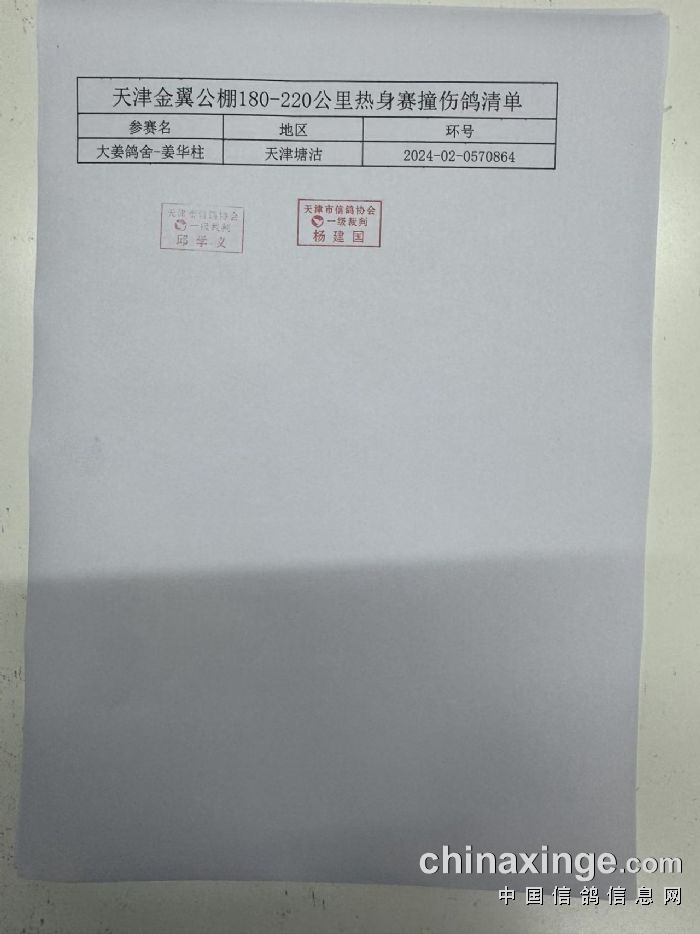 天津金翼公棚180-220公里热身赛撞伤鸽清单
