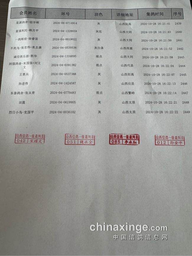 山西文盛赛鸽公棚嘉奖获奖名单