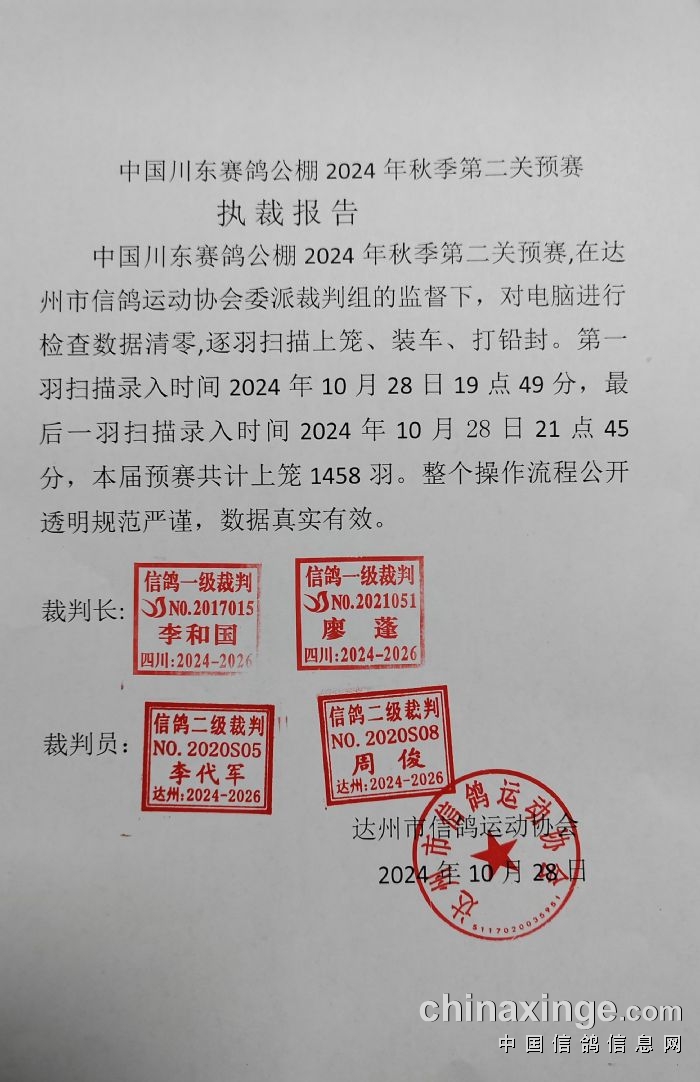 中国川东赛鸽公棚2024年秋季第二关预赛执裁报告