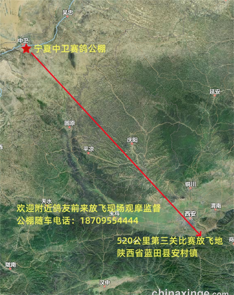宁夏中卫赛鸽公棚520公里第三关比赛暂定于11月4日集鸽,5日在陕西省蓝田县开笼。(如遇天气缘故,比赛时间提前或顺延,具体时间另行通知)