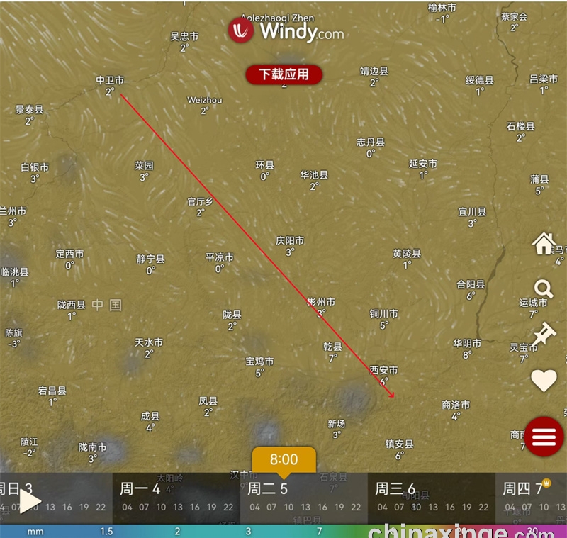 放飞地纬度:34°6′11.4.″