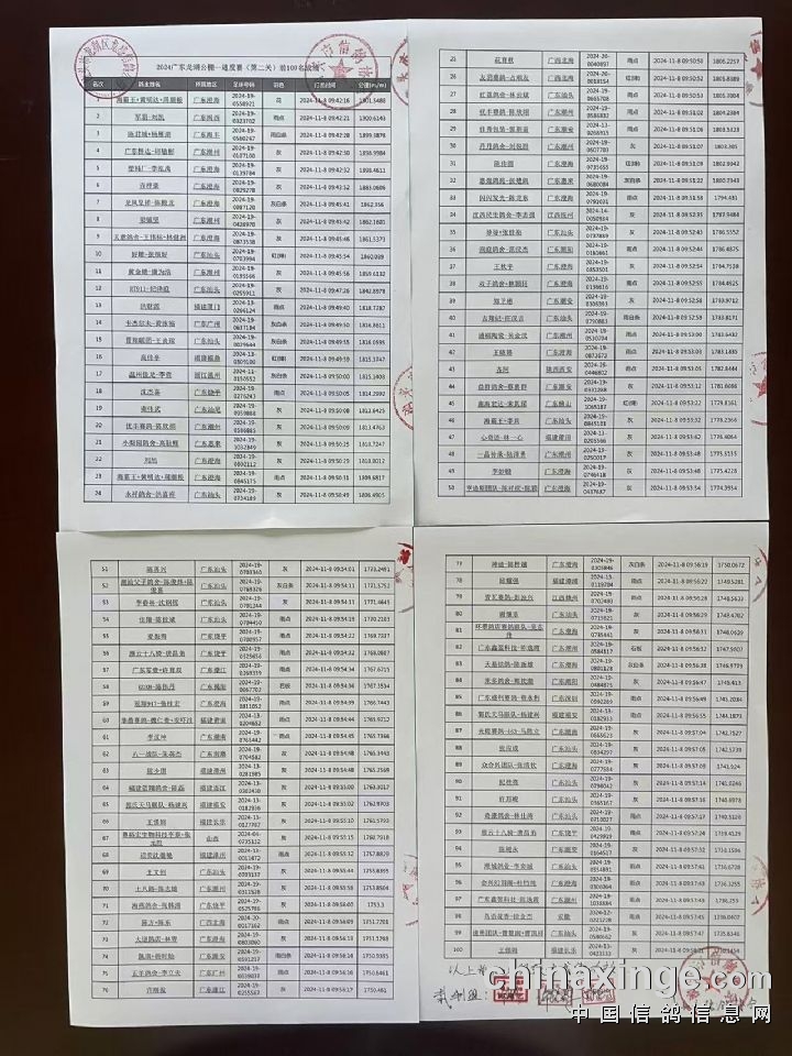 2024广东龙湖公棚速度赛(第二关)前100名成绩