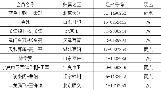 天津宇航VIP赛鸽公棚380-400公里失格赛鸽名单