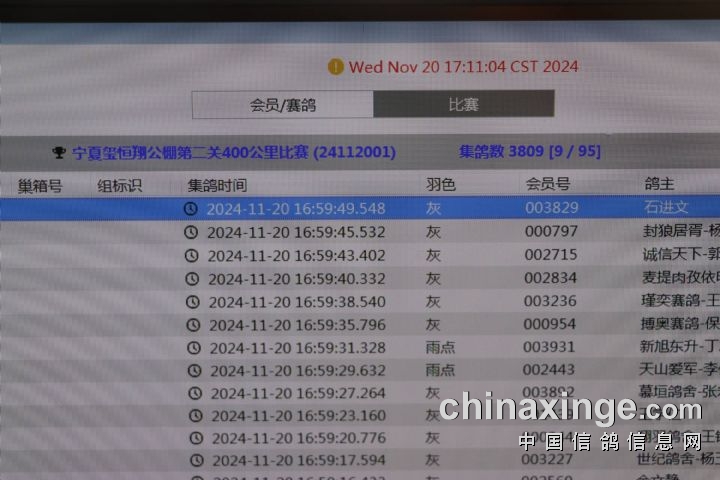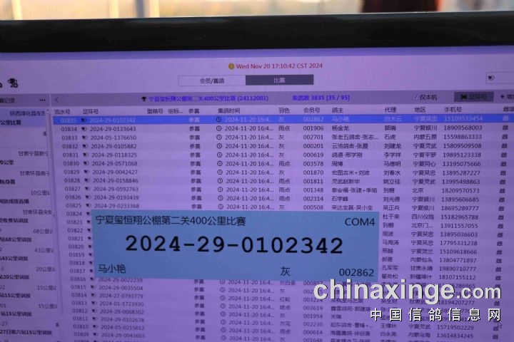 宁夏玺恒翔公棚第十站43公里训放数据直播(不含漏扫)