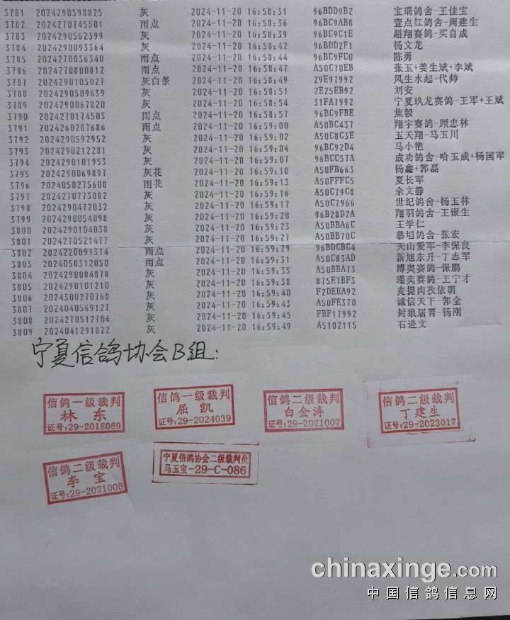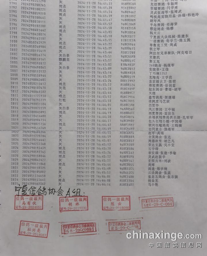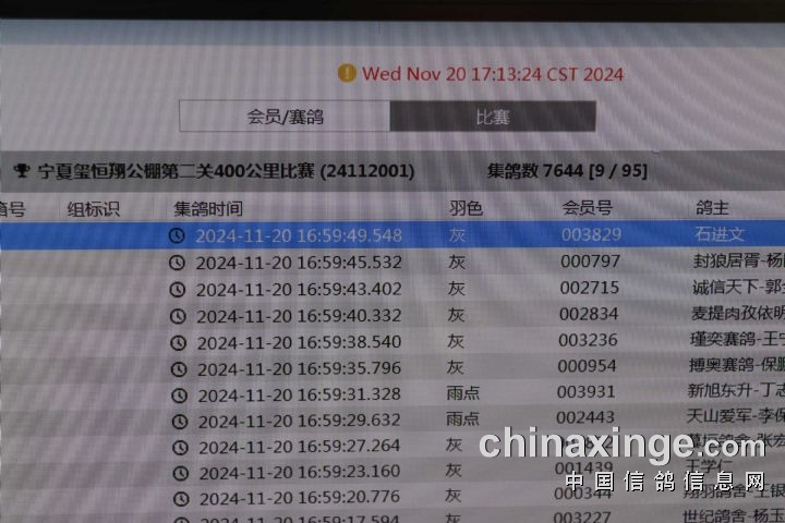 宁夏玺恒翔公棚第九站23公里训放数据直播(不含漏扫)