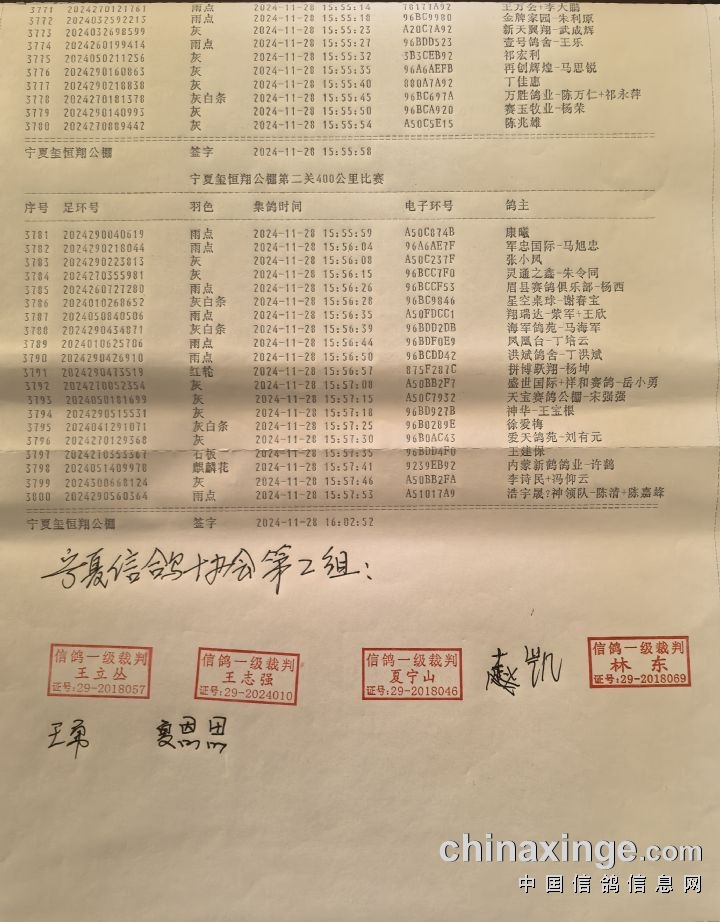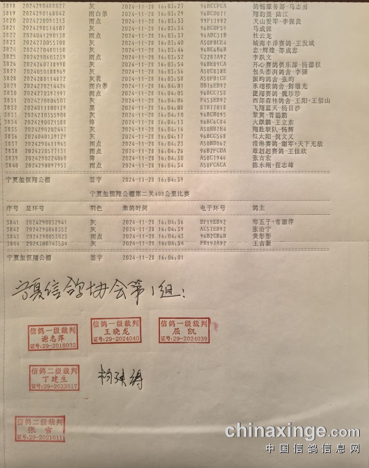 • 宁夏玺恒翔公棚第二关380-420公里获奖明细 (2025-11-20 14:13:19)