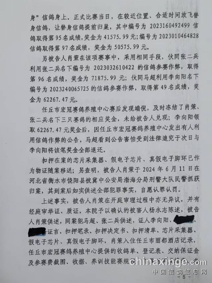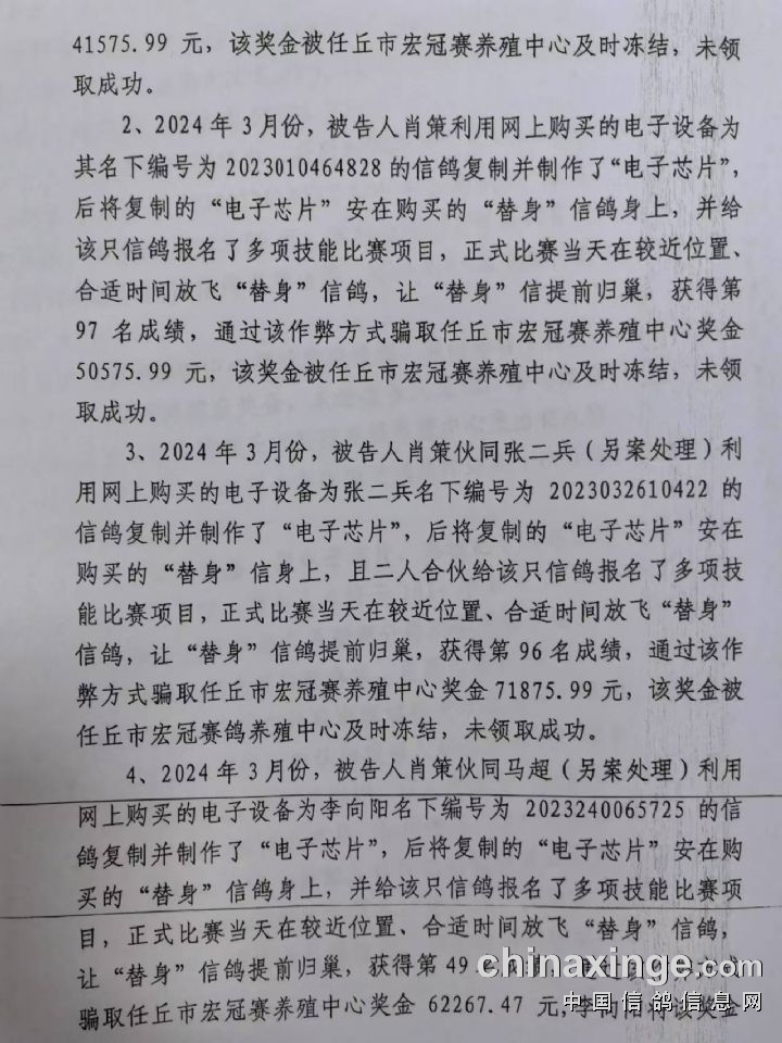 该案的成功宣判,不仅维护了法律的尊严,也彰显了河北宏冠春棚维护信鸽赛场秩序的决心,信鸽赛场不是法外之地!在此,河北宏冠公棚对参与该案侦破的公安机关、检查机关、人民法院及各级信鸽协会、广大信鸽爱好者表示由衷感谢!是大家的团结努力,积极提供、固定相关证据才有了今日公正的结果,不仅维护了宏冠的声誉,还事实一个真相,更有效维护了所有参赛鸽友的权益!