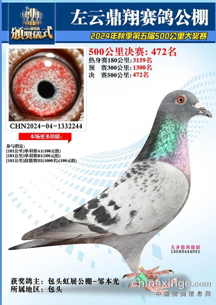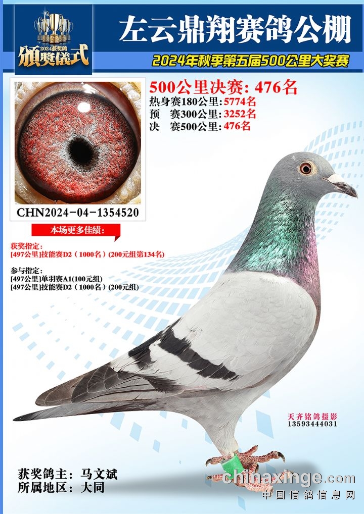 2024年鼎翔公棚决赛获奖鸽471-485名