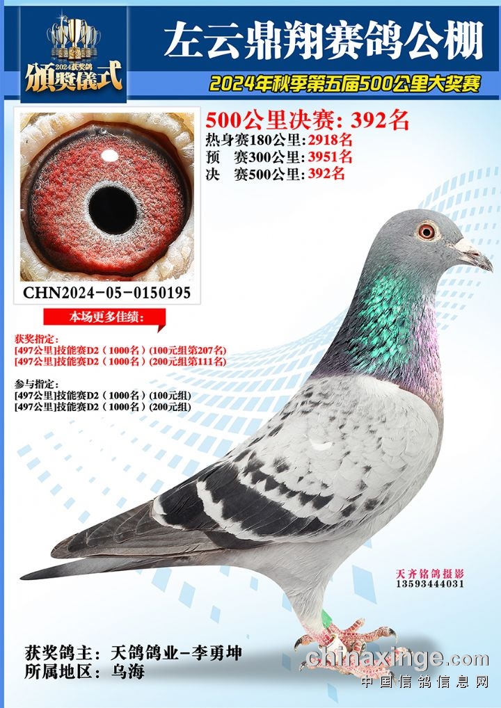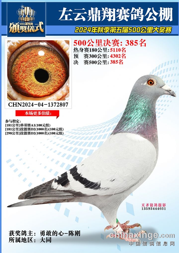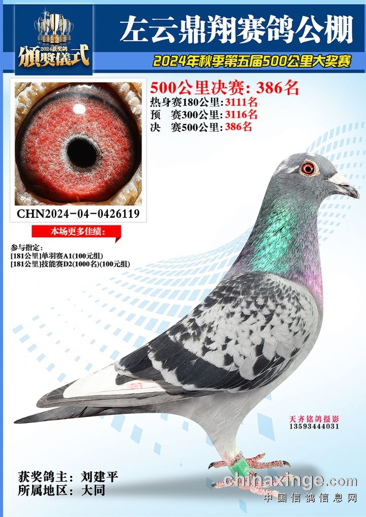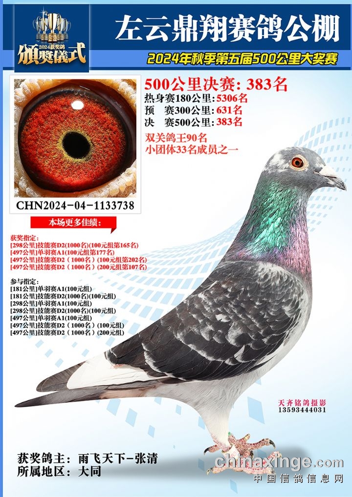 2024年鼎翔公棚决赛获奖鸽381-395名