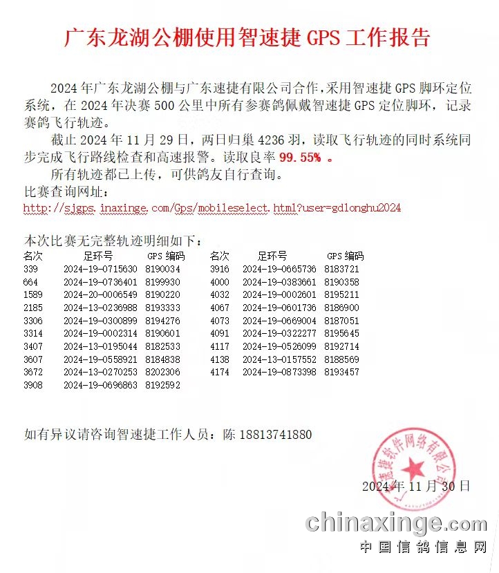 2024广东龙湖赛鸽公棚使用智速捷GPS工作报告
