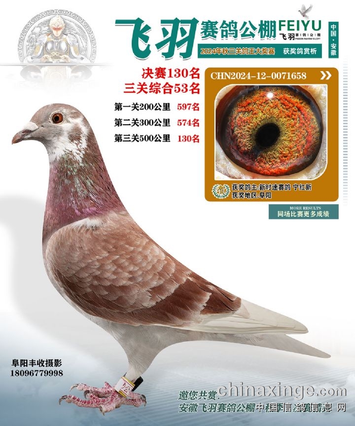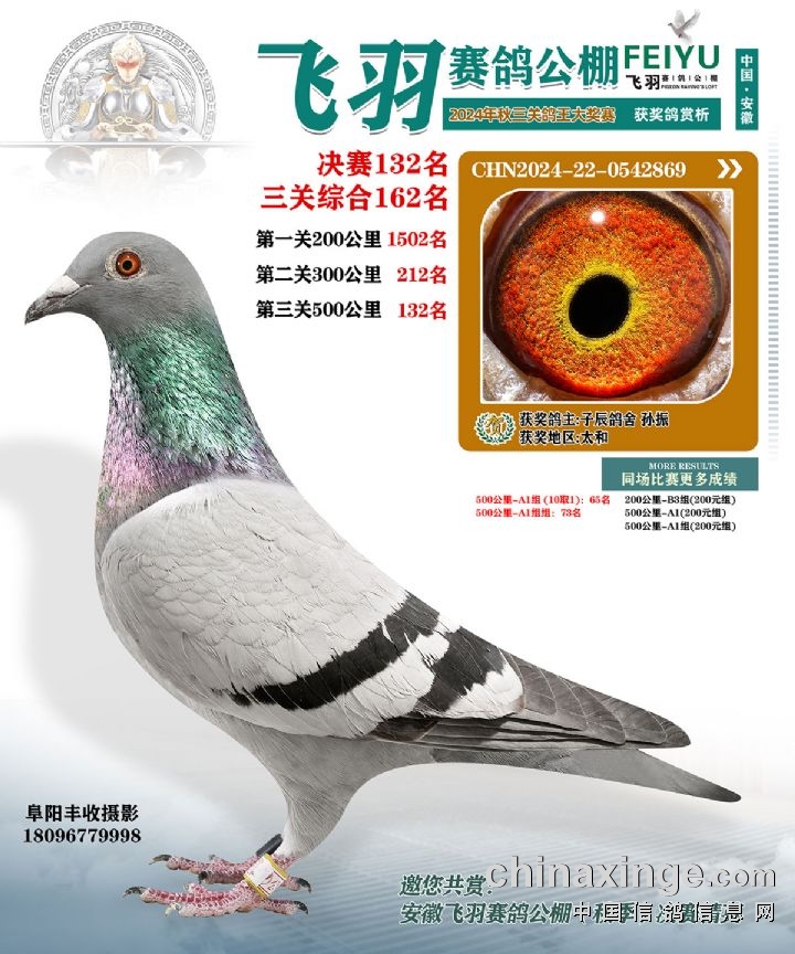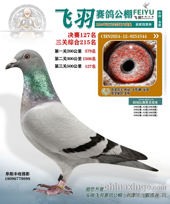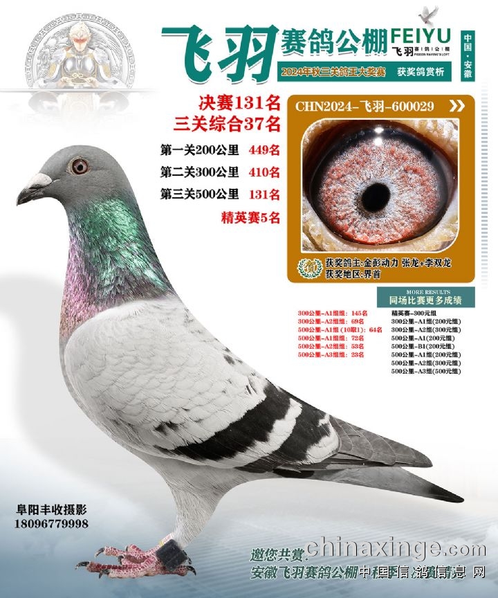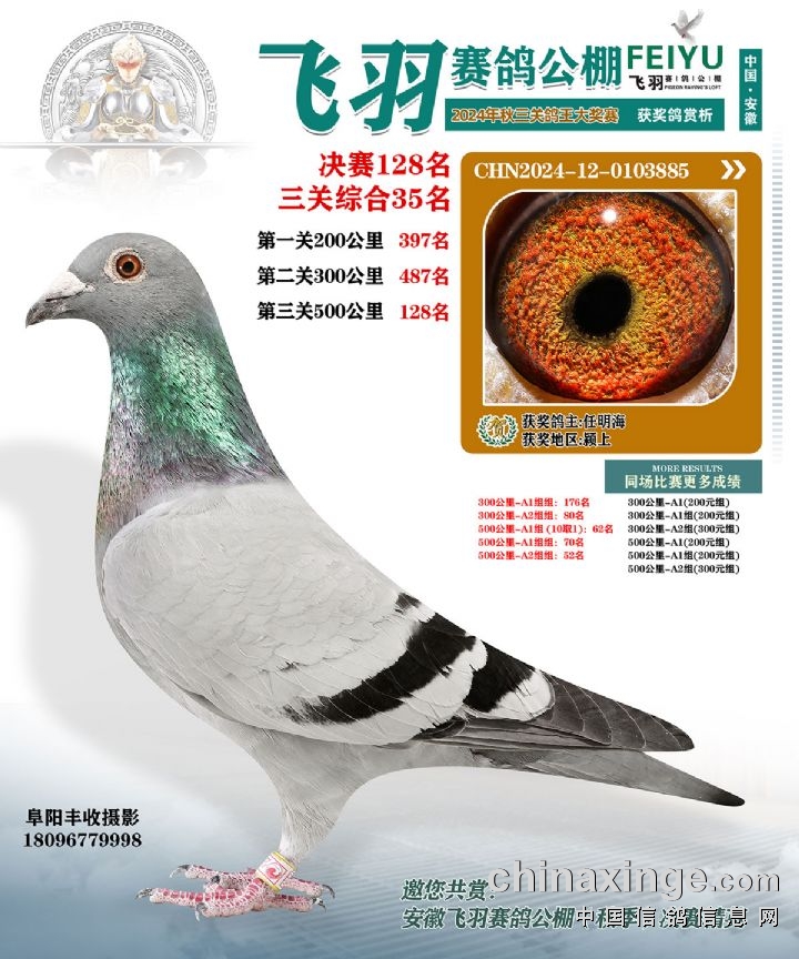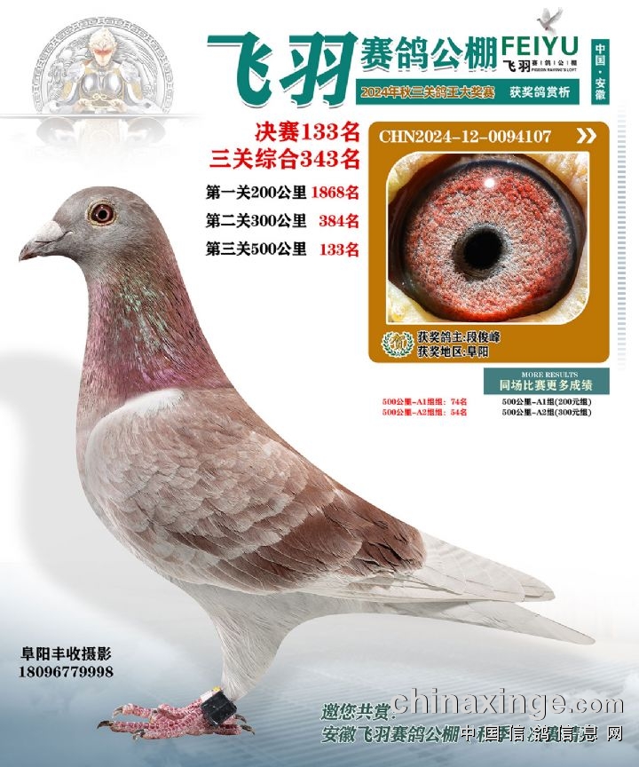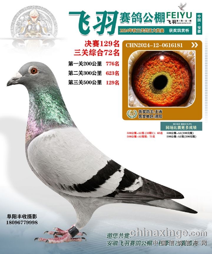 安徽飞羽俱乐部(秋):2024年获奖鸽图片鉴赏127名-133名
