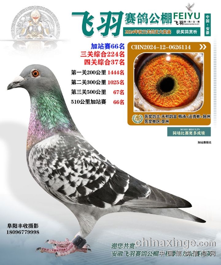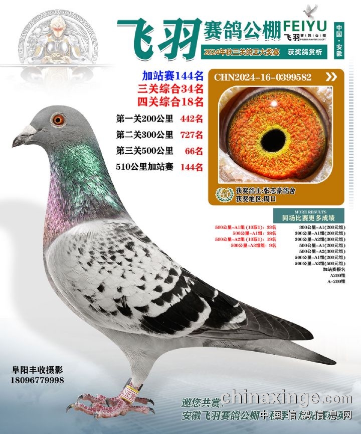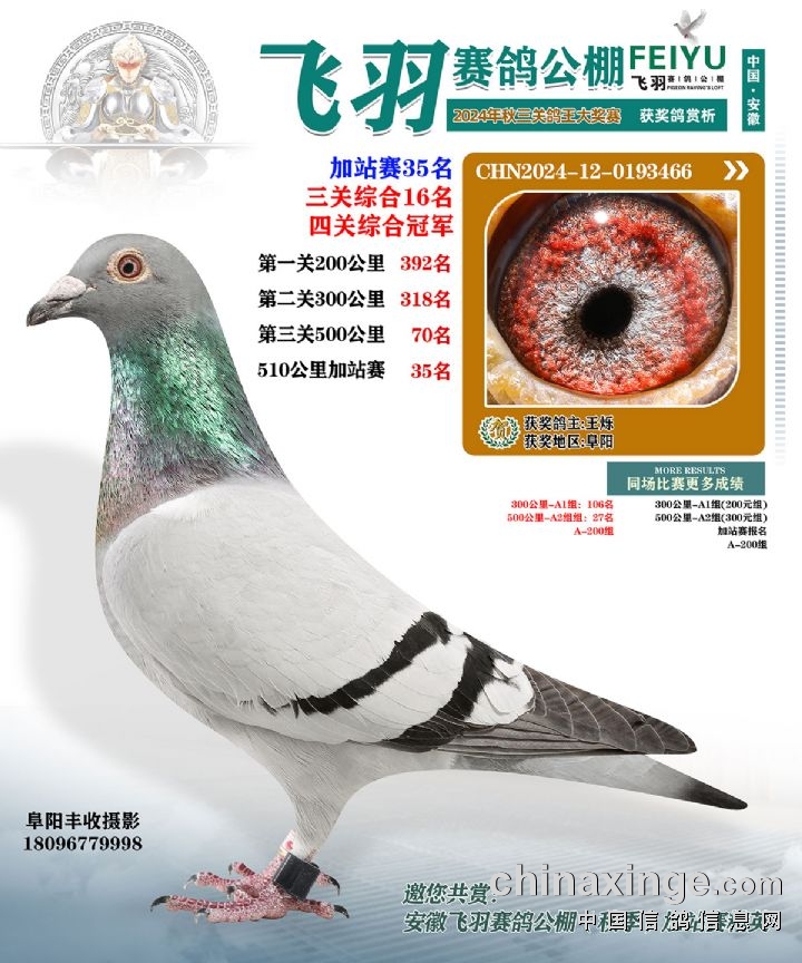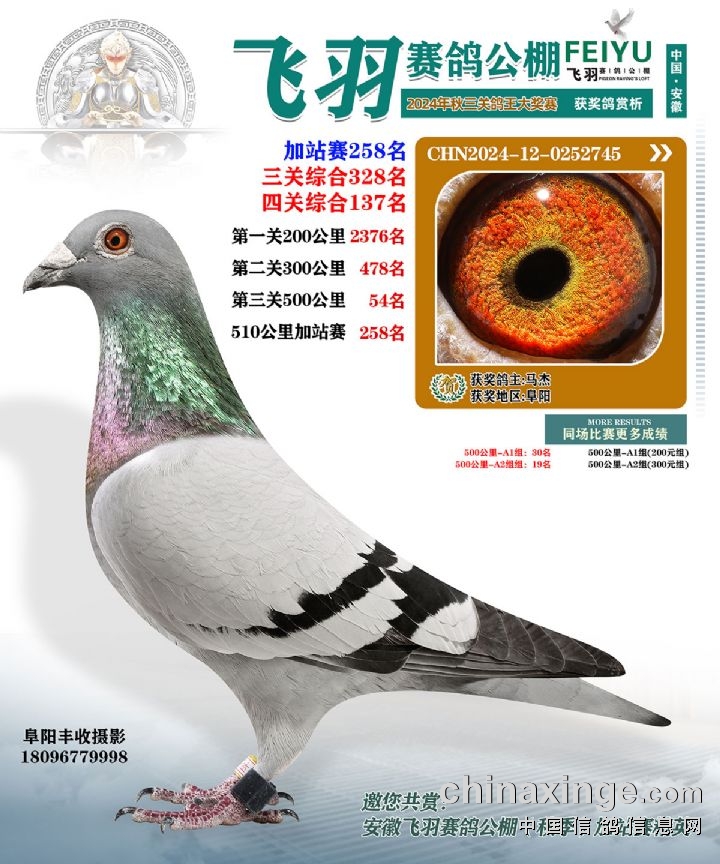 安徽飞羽俱乐部(秋):2024年加站赛获奖鸽图片鉴赏54名-70名