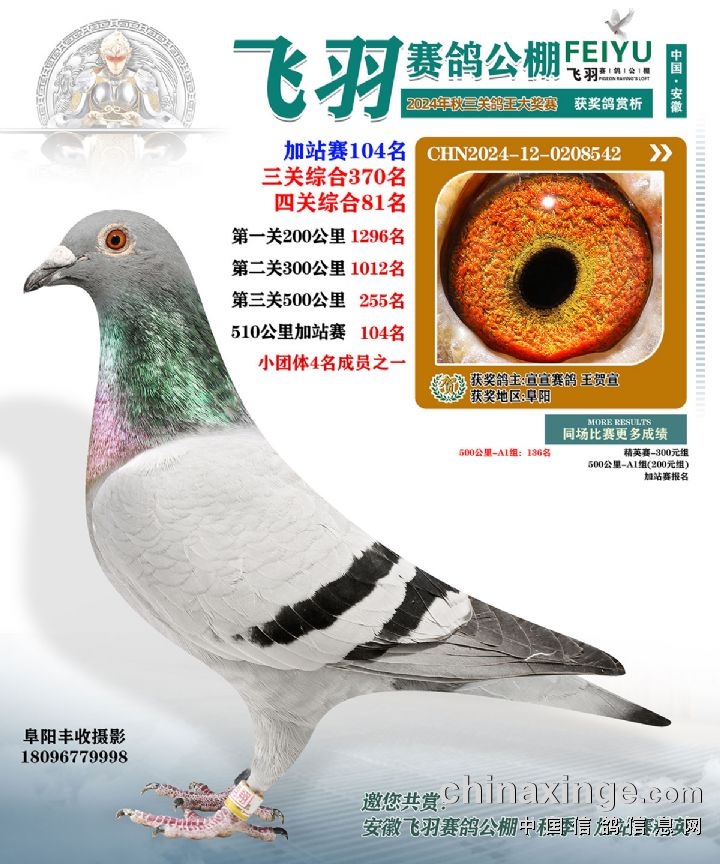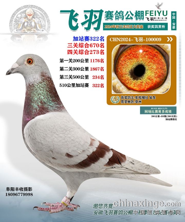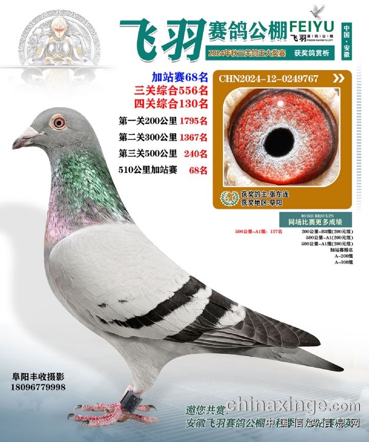 安徽飞羽俱乐部(秋):2024年加站赛获奖鸽图片鉴赏234名-255名