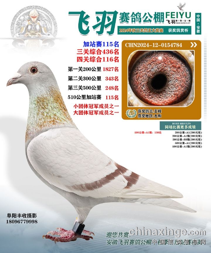 安徽飞羽公棚(秋):2024年获奖鸽回棚领回公告