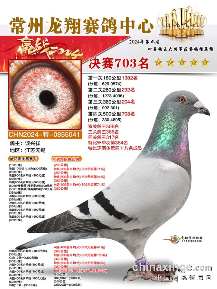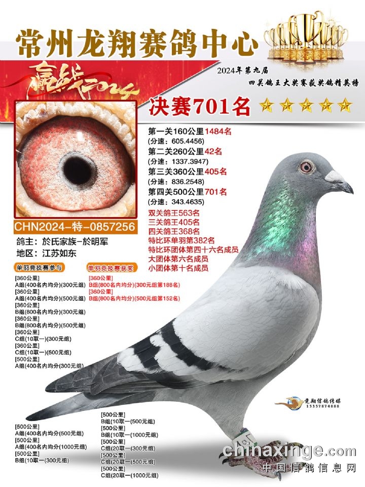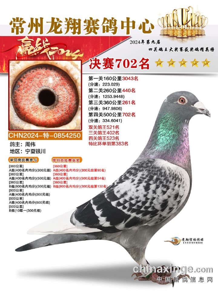 常州龙翔:2024年决赛获奖鸽靓照701-705名