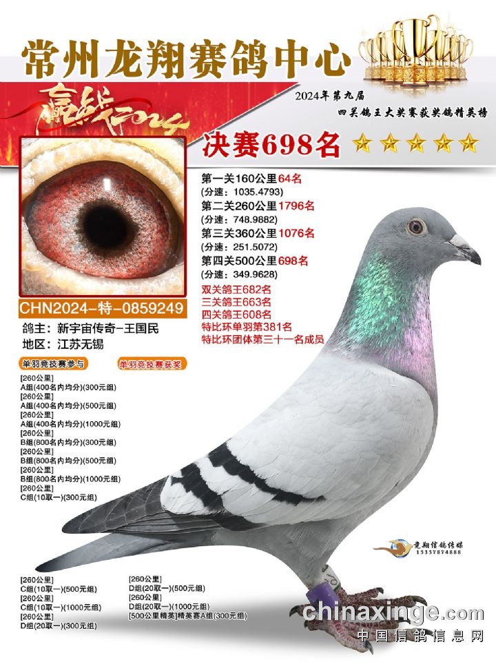 常州龙翔:2024年决赛获奖鸽靓照696-700名