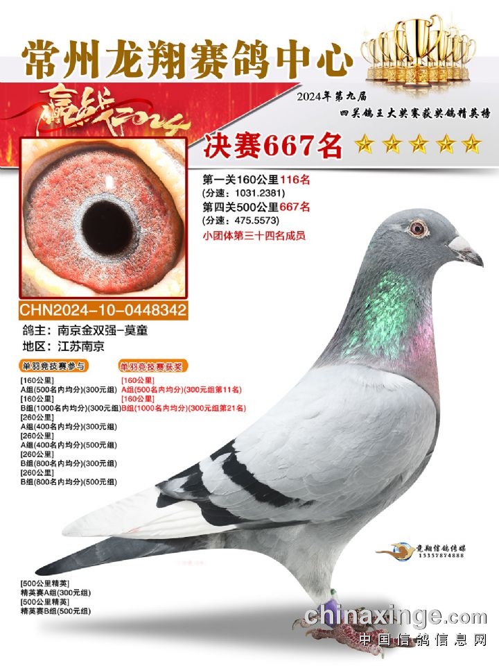常州龙翔:2024年决赛获奖鸽靓照666-670名