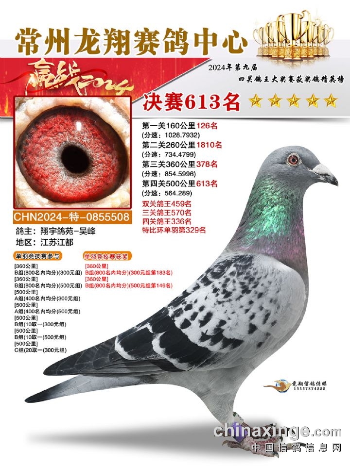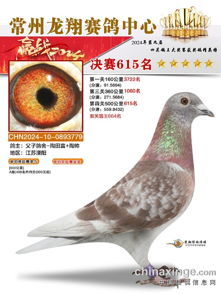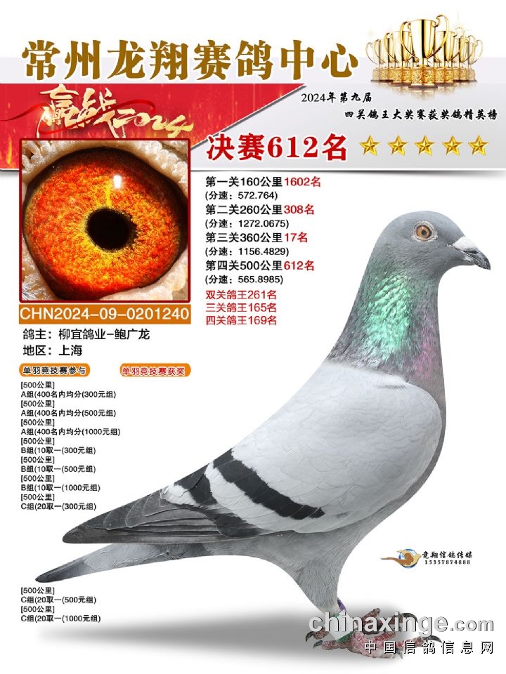 常州龙翔:2024年决赛获奖鸽靓照611-615名